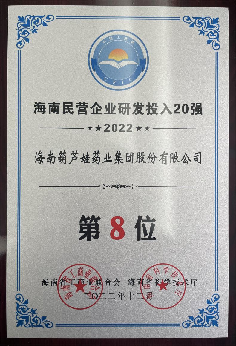 12月23日,2022海南民营企业50强和研发投入20强发布会在海口举行。会上发布了“2022海南民营企业50强”“2022海南民营企业研发投入20强”榜单和分析报告。扑克之星药业再次荣登两榜,在海南民营企业50强榜单中位列第25位,较去年上升8位,这也是公司连续三年登榜;在海南民营企业研发投入20强中位列第8位,较去年上升7位。